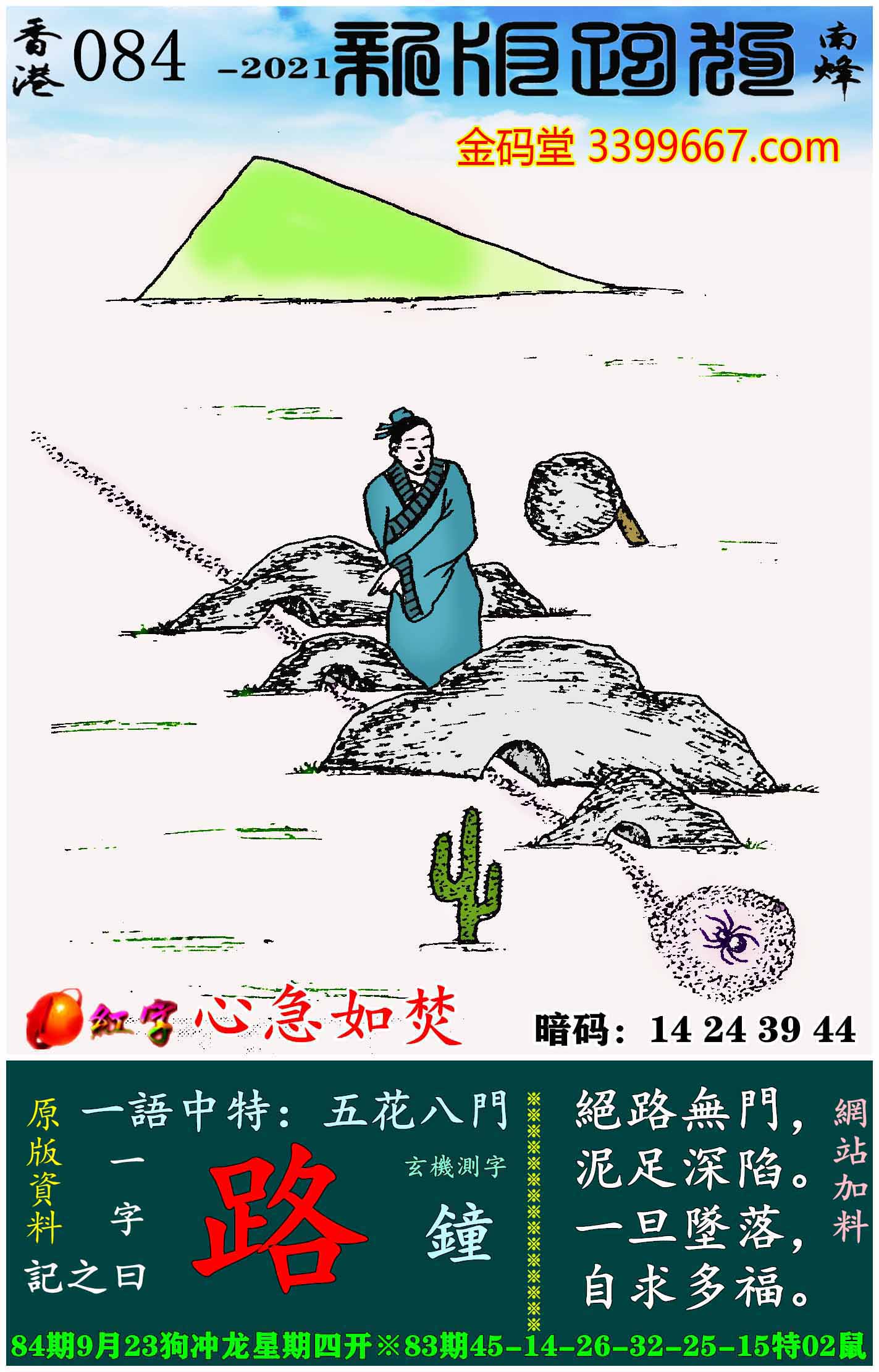 084期:新版跑狗一字記之曰【路】玄機測字:《鐘》