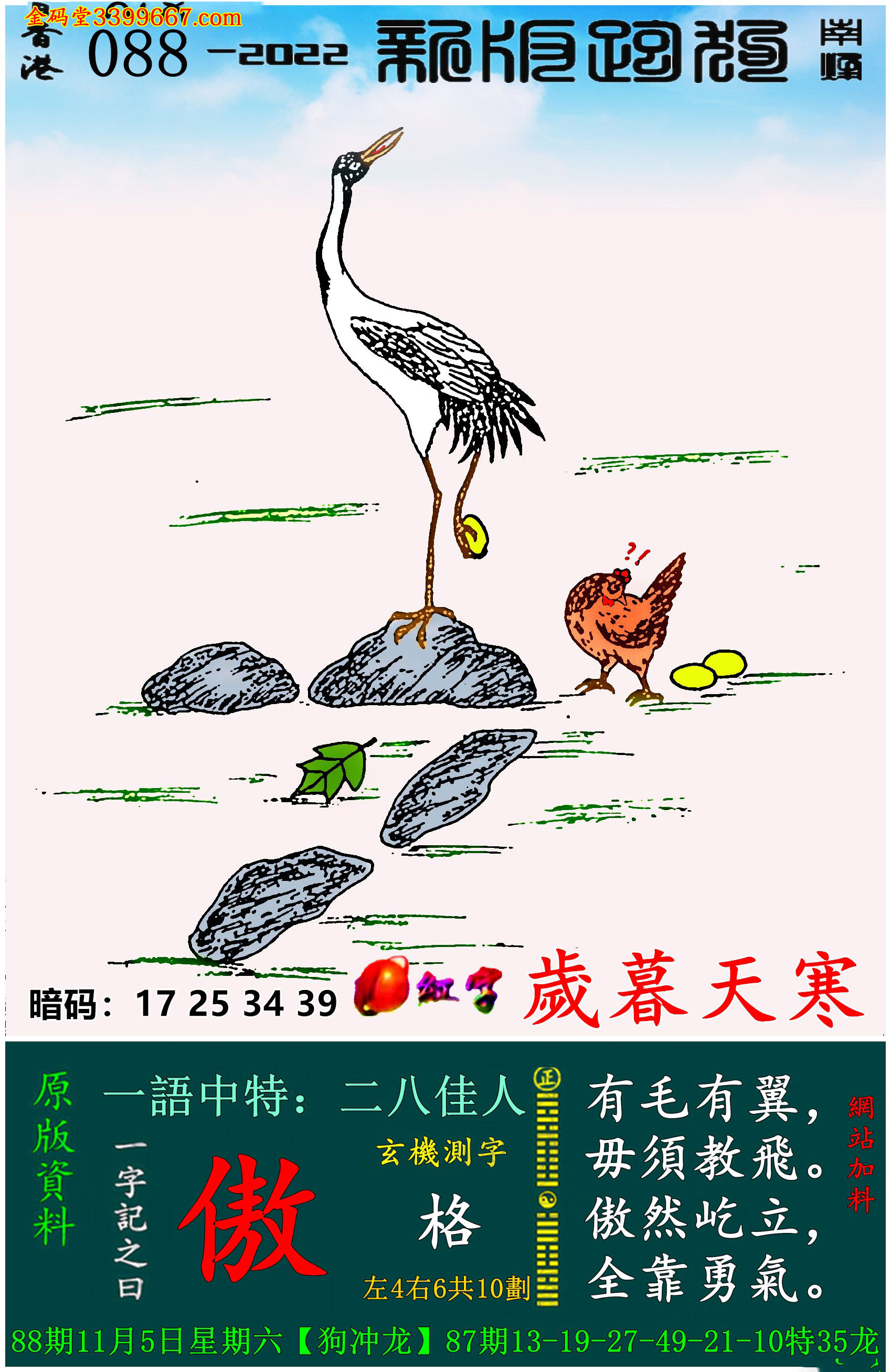 088期新版跑狗一字記之曰:【傲】