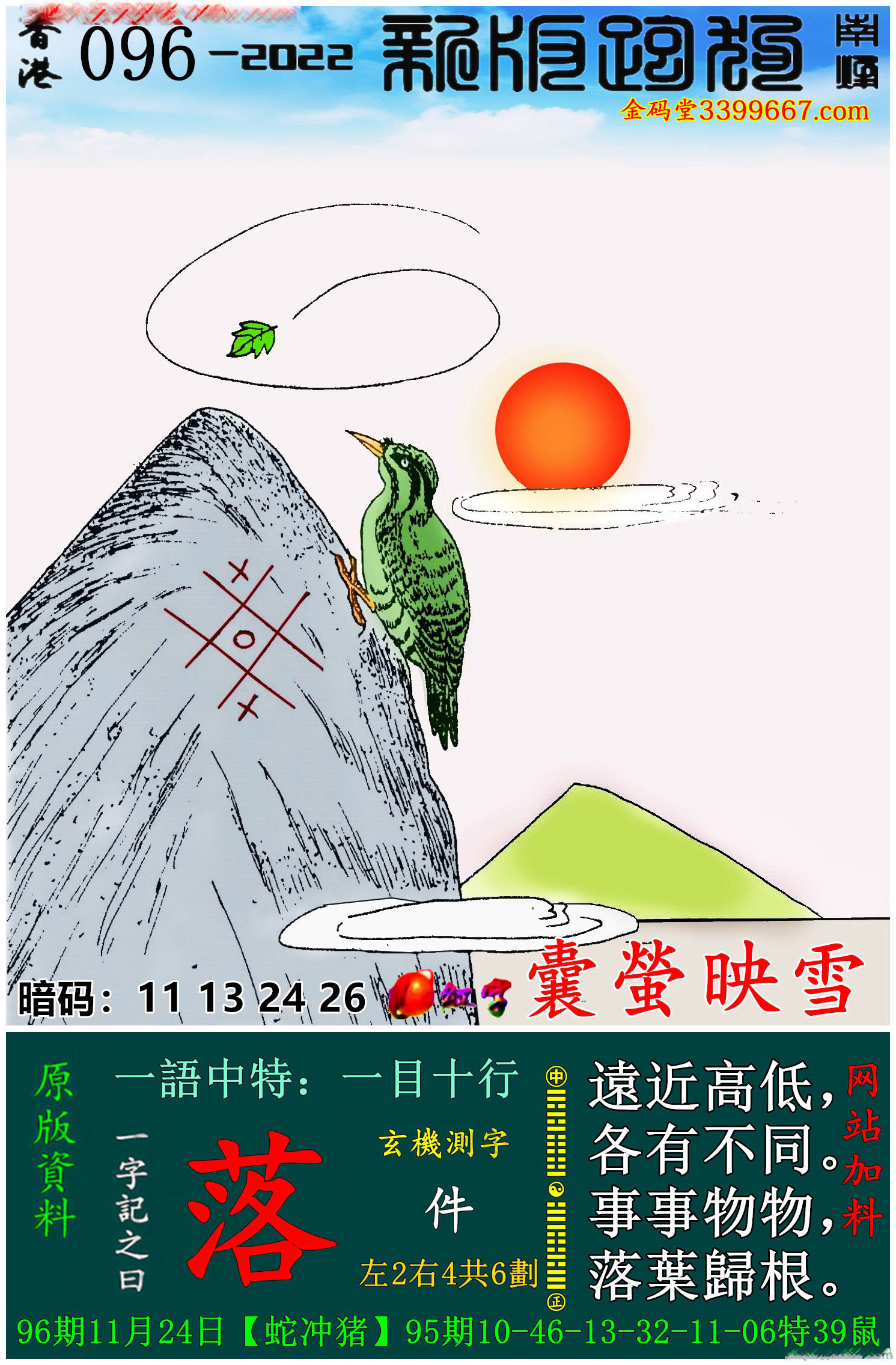 096期:新版跑狗一字記之曰【落】玄機測字:《件》