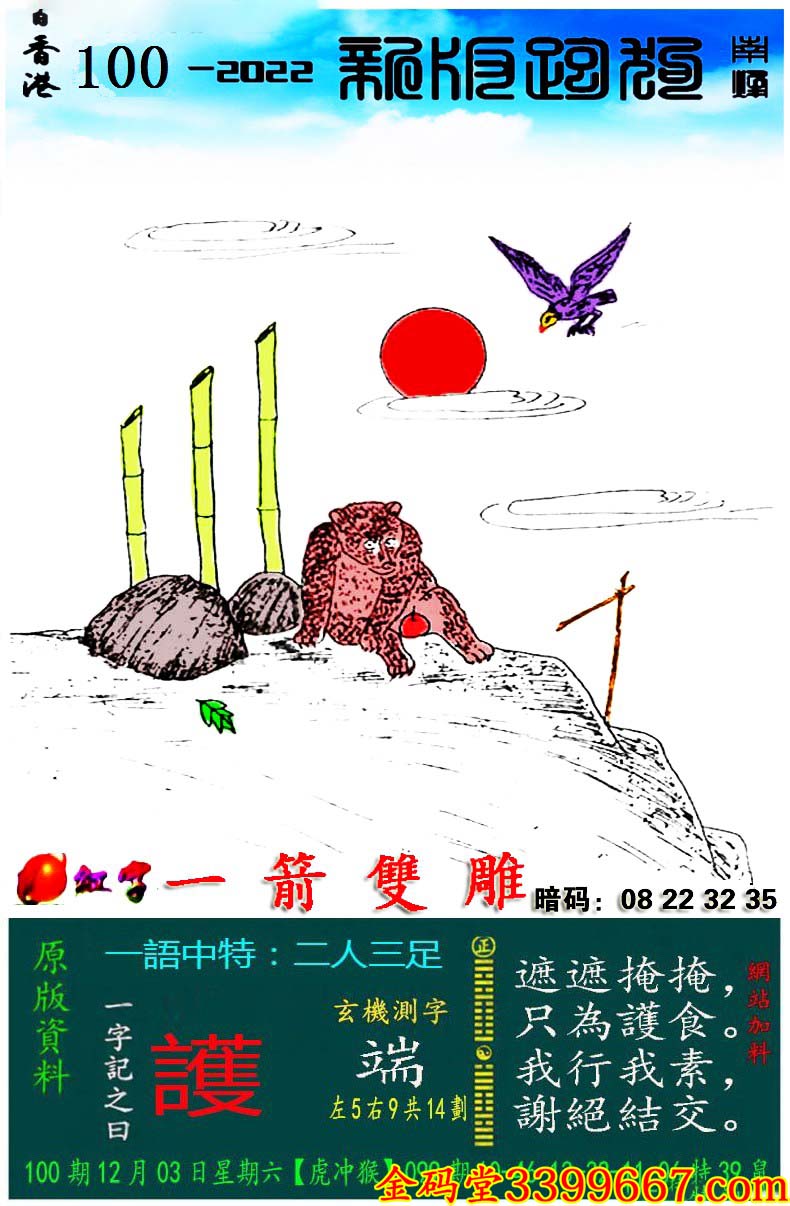 主题 : 100期:新版跑狗一字記之曰【護】玄機測字:《端》