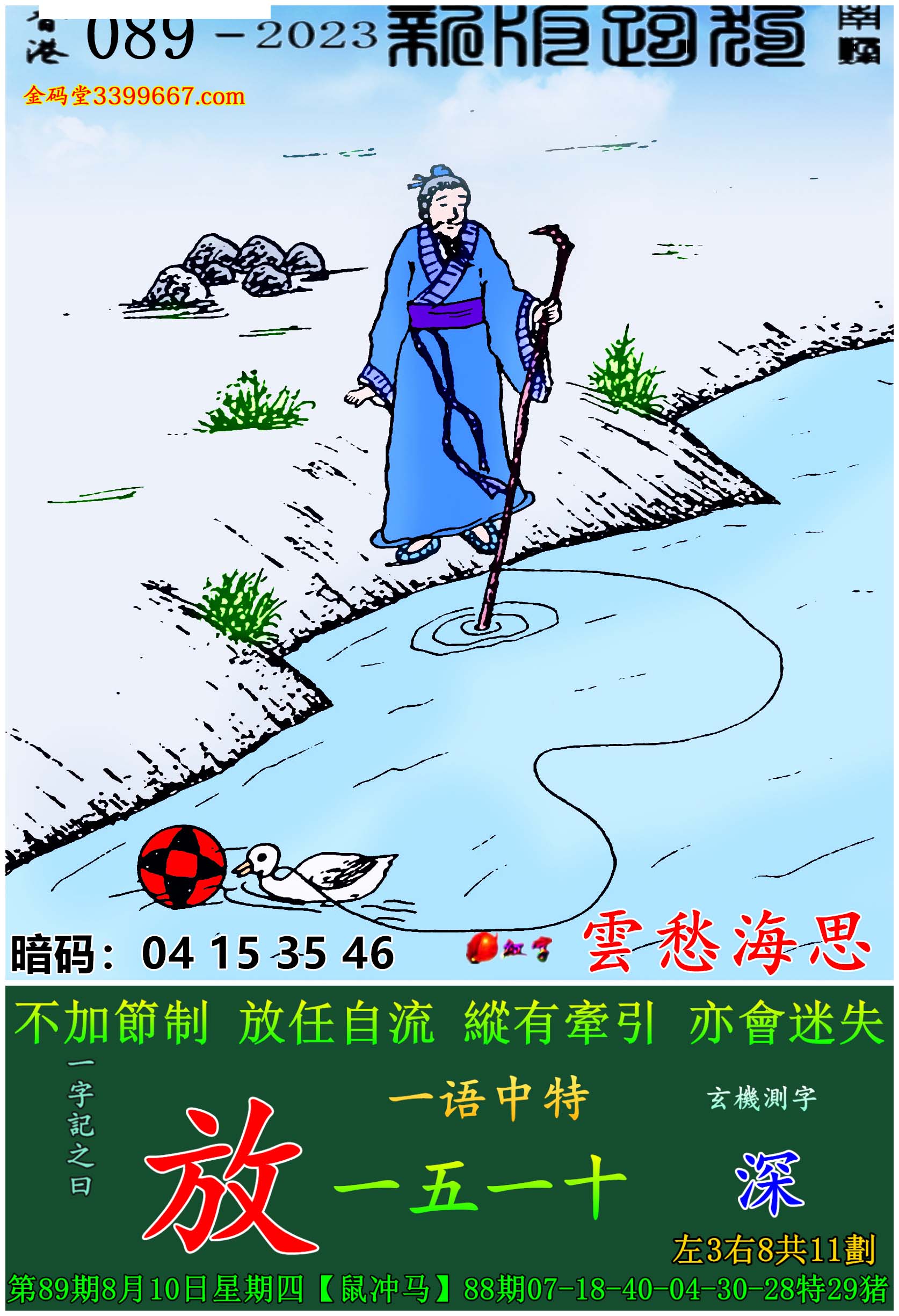 主题 : 089期:新版跑狗一字記之曰【放】玄機測字:《深》