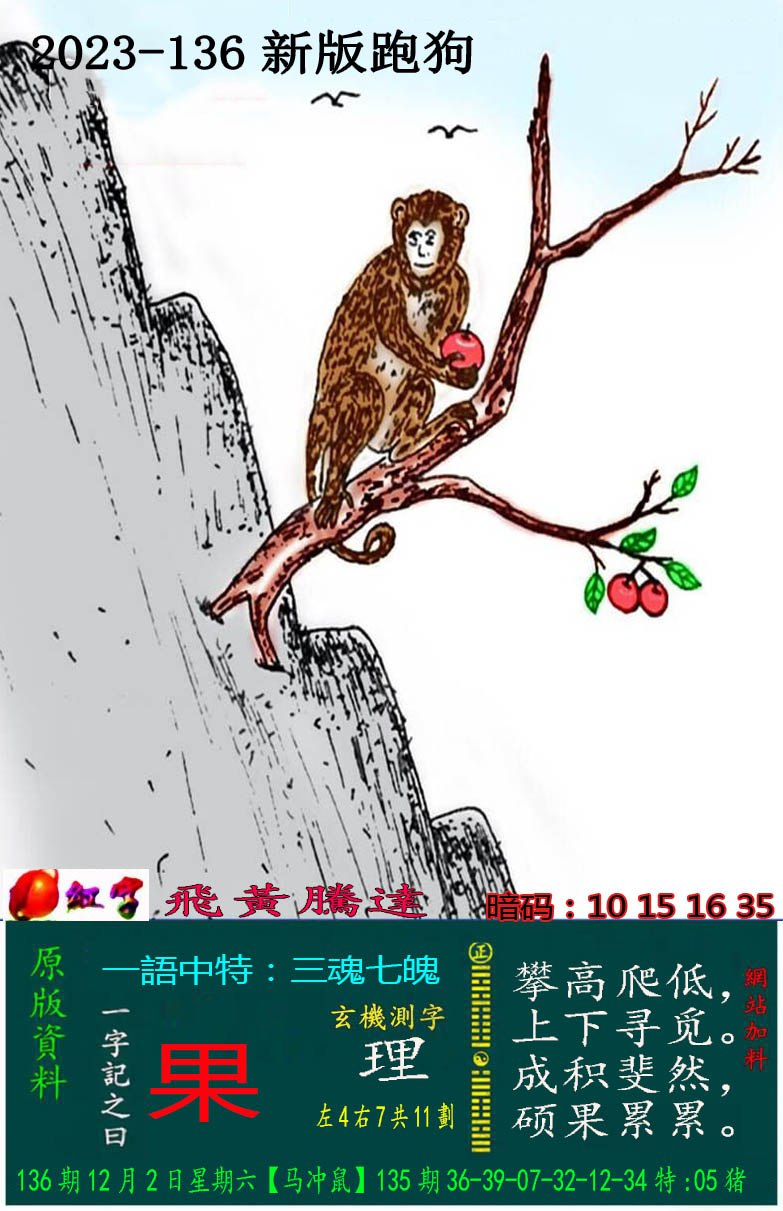 136期:新版跑狗一字記之曰【果】 玄機測字:《理》
