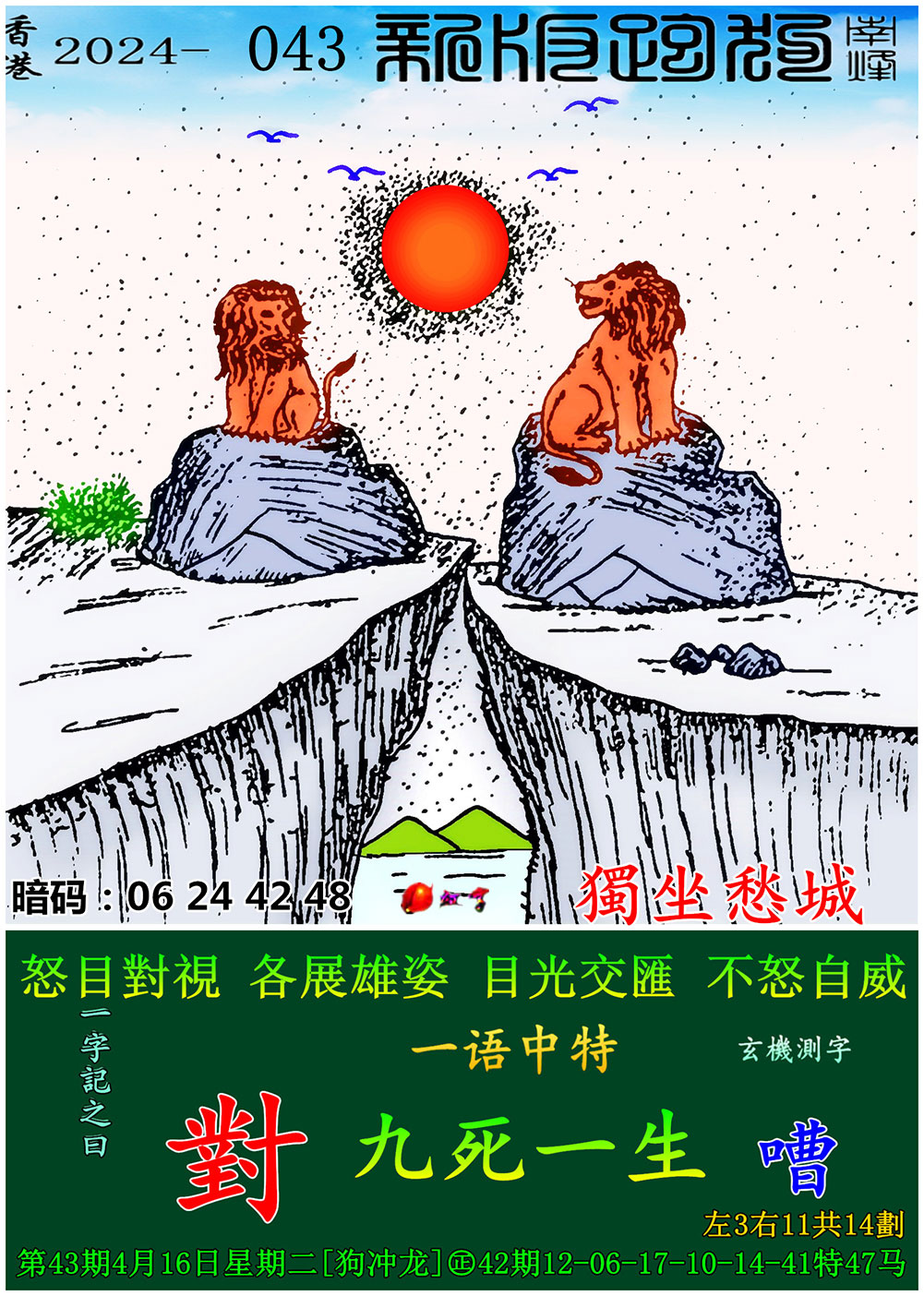 043期:新版跑狗一字記之曰【對】 玄機測字:【嘈】