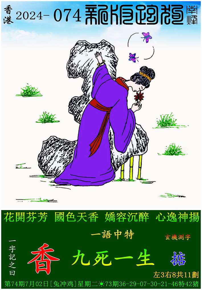 074期:新版跑狗一字記之曰【香】 玄機測字:【掂】
