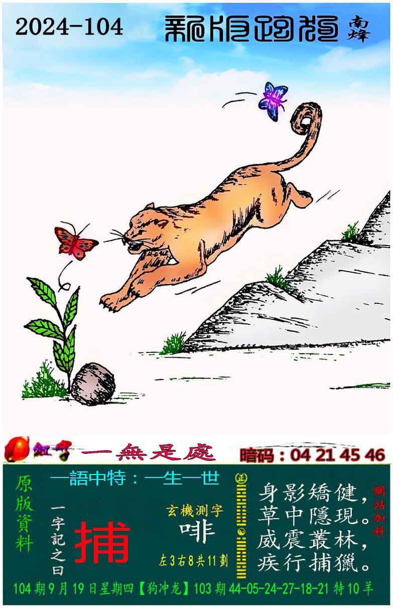 104期:新版跑狗一字記之曰【捕】 玄機測字:【啡】