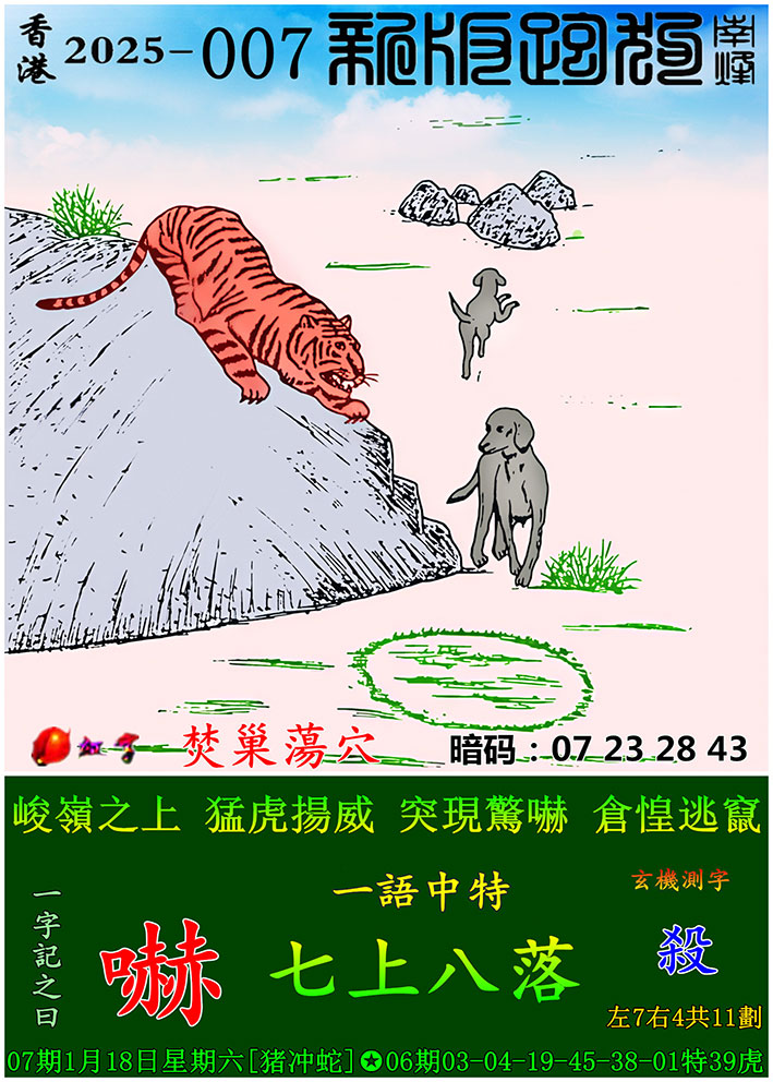 007期:新版跑狗一字記之曰【嚇】 玄機測字:【殺】