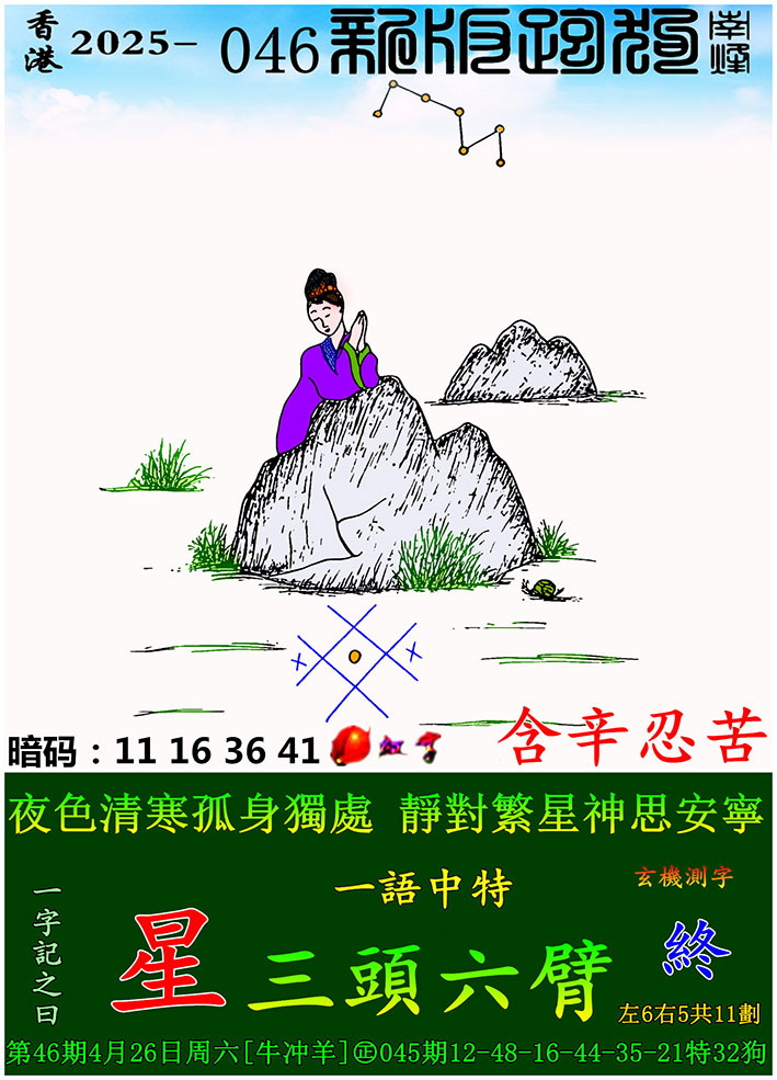 主题 : 046期:新版跑狗一字記之曰【星】 玄機測字:【終】