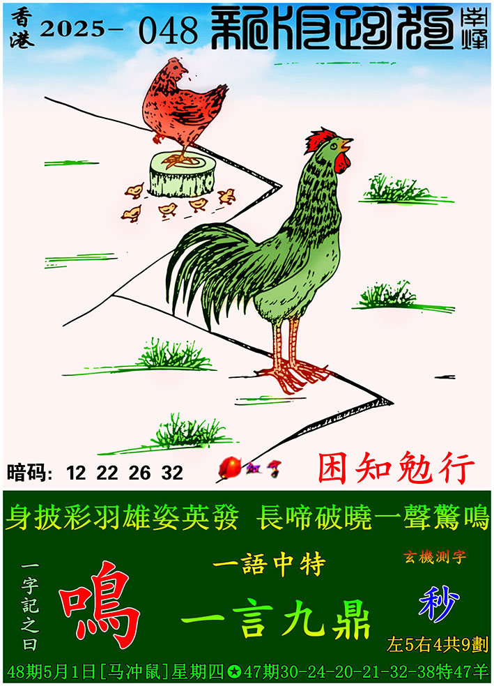 048期:新版跑狗一字記之曰【鳴】 玄機測字:【秒】