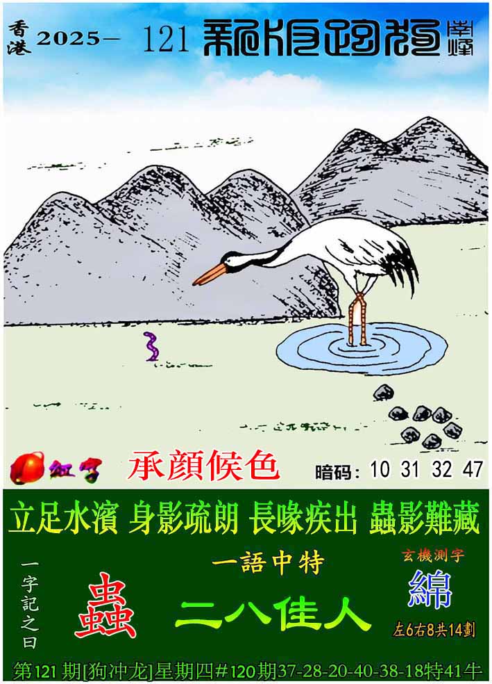 121期:新版跑狗一字記之曰【蟲】 玄機測字:【綿】