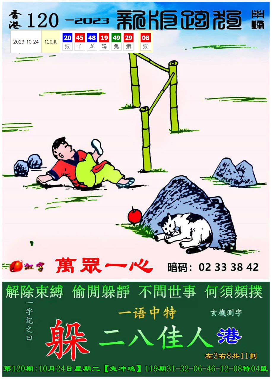 123期:新版跑狗一字記之曰【躲】 玄機測字:【戲】