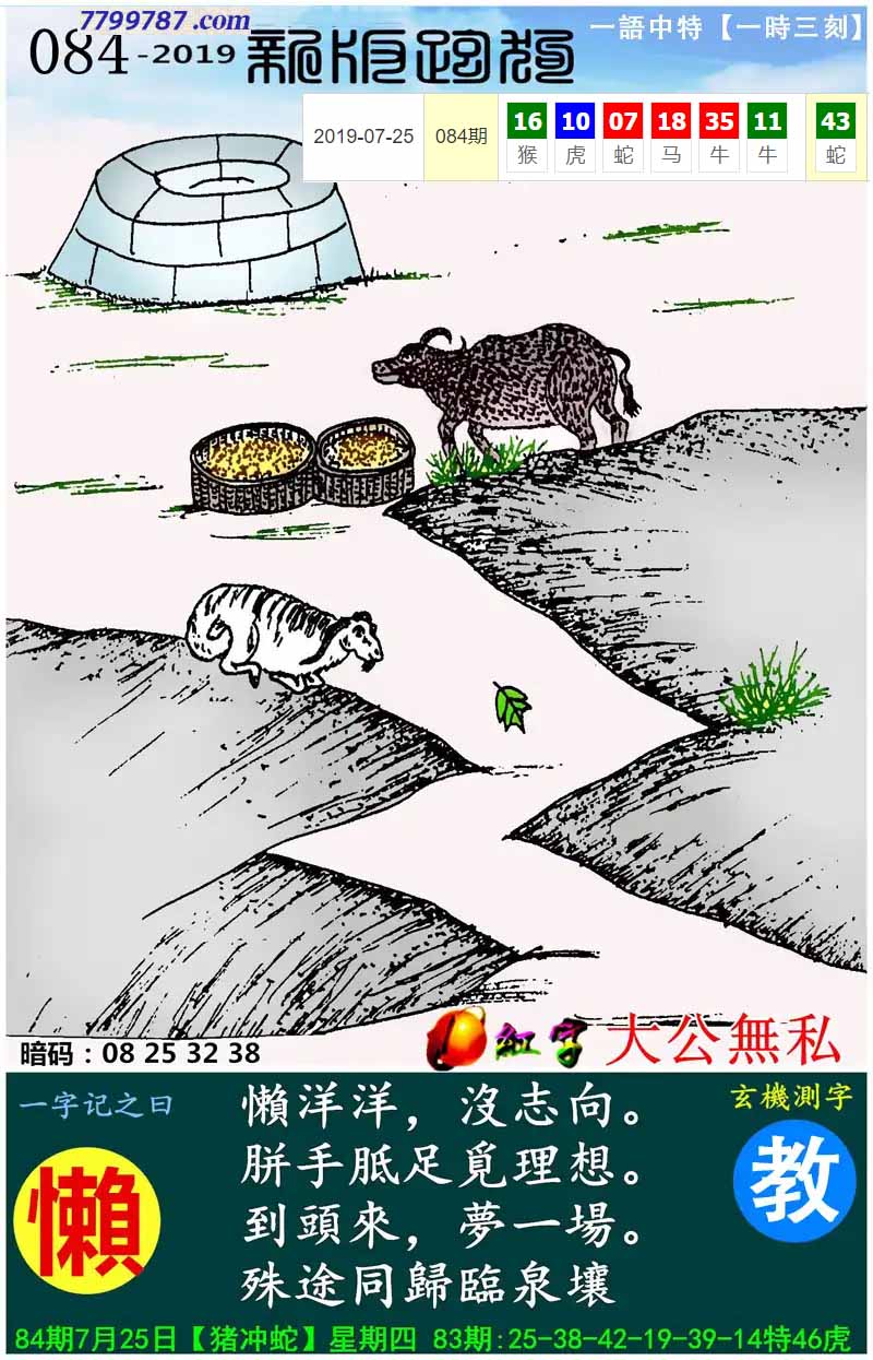 131期:新版跑狗一字記之曰【井】 玄機測字:【洲】