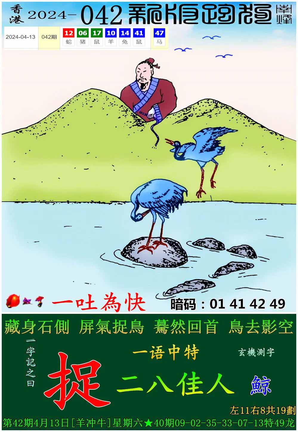 主题 : 028期新版跑狗一字記之曰:【雙】玄機測字:《歡》
