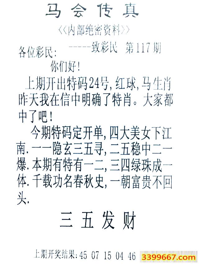 | 主题 :117期:首发推荐:≮馬會傳眞≯→(香港正版) |