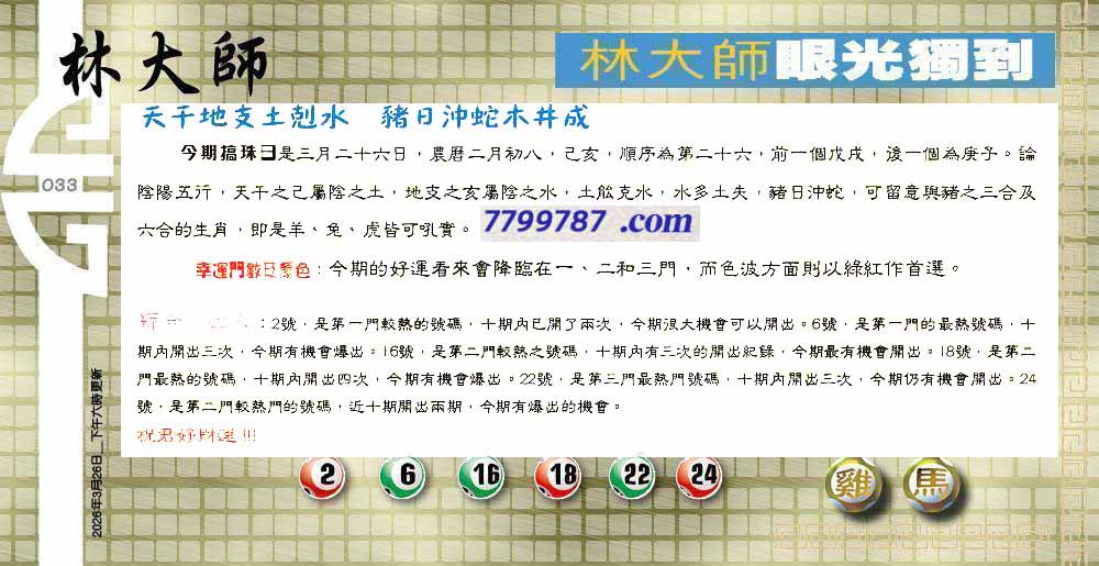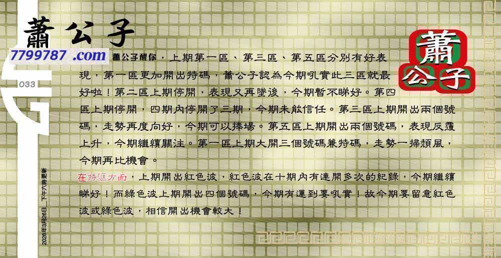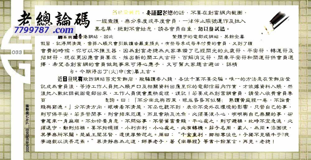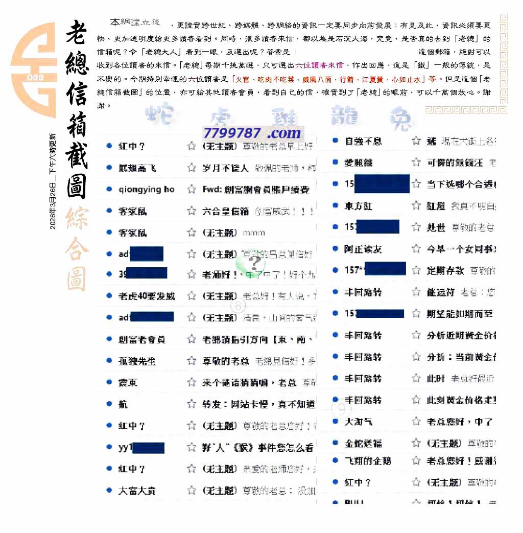 主题 : 033期:六合皇金句/老总论码/萧公子/林大师/五行夺码/老总信箱截图