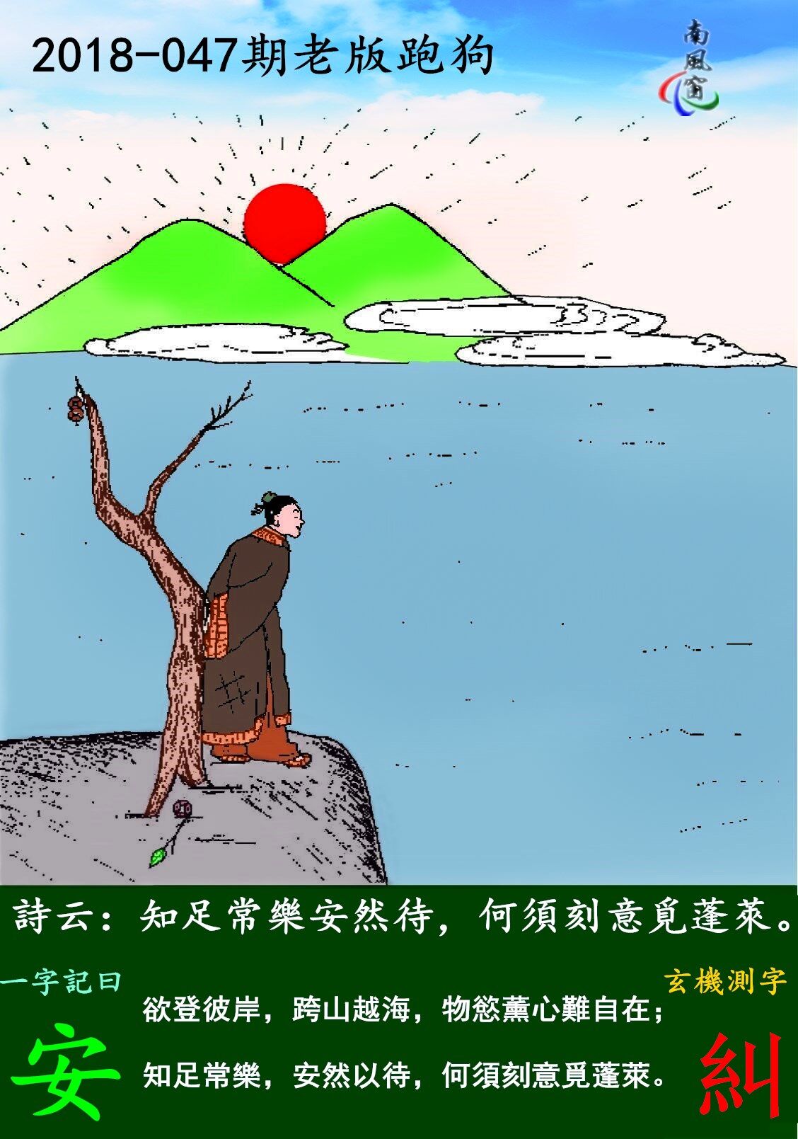 主题 : 047期:老版跑狗一字記之曰:【安】玄機測字《糾》