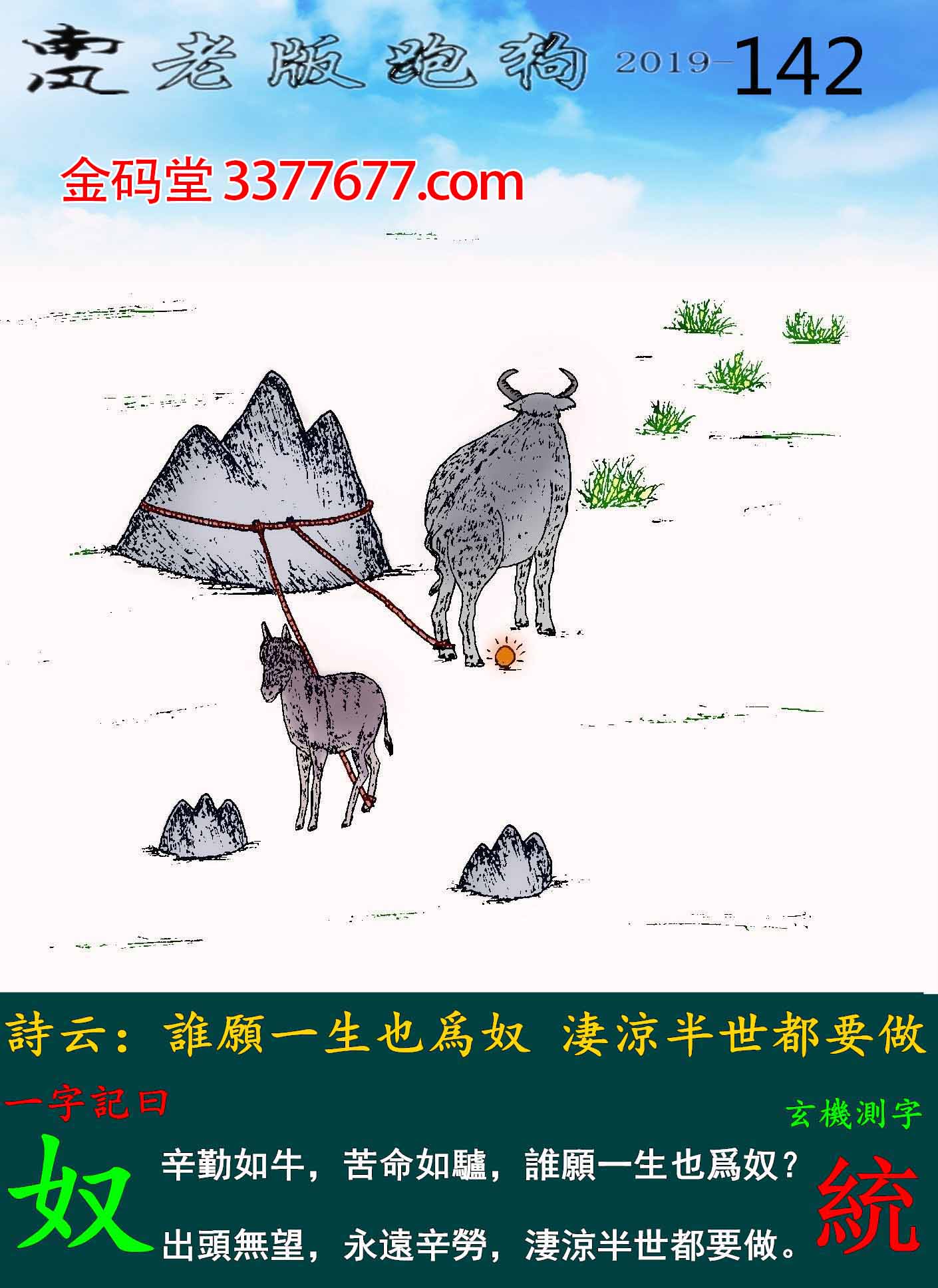 142期老版跑狗一字記之曰:【奴】玄機測字:《統》