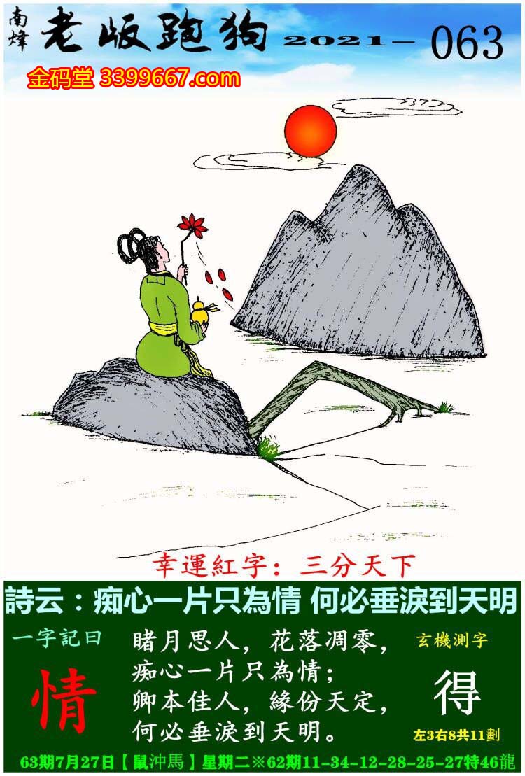 主题 : 063期老版跑狗一字記之曰:【情】玄機測字:《得》