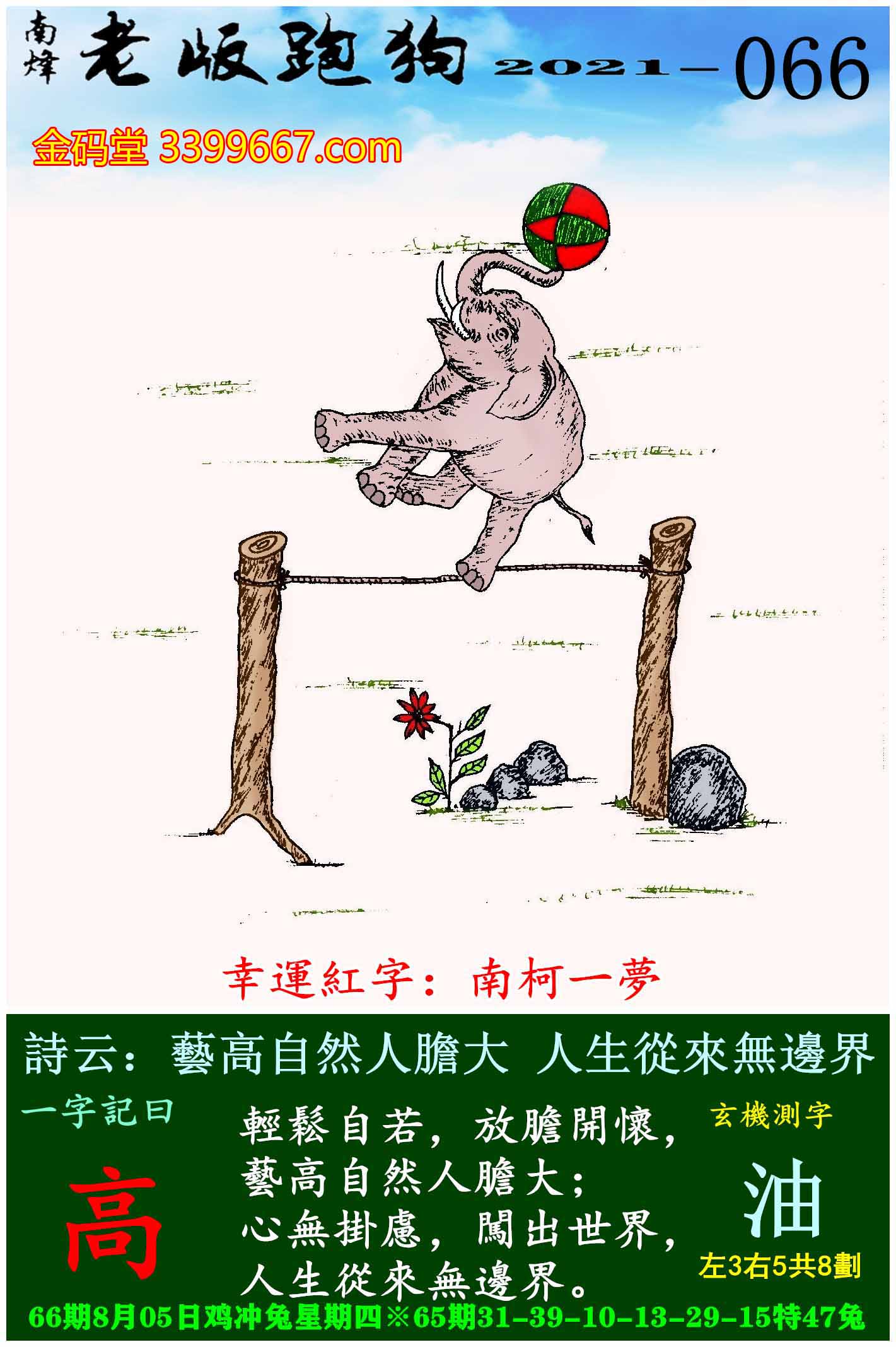 066期老版跑狗一字記之曰:【高】