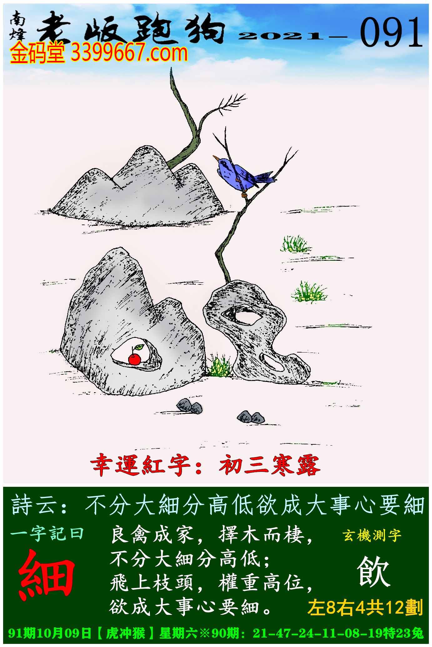 091期老版跑狗一字記之曰:【細】