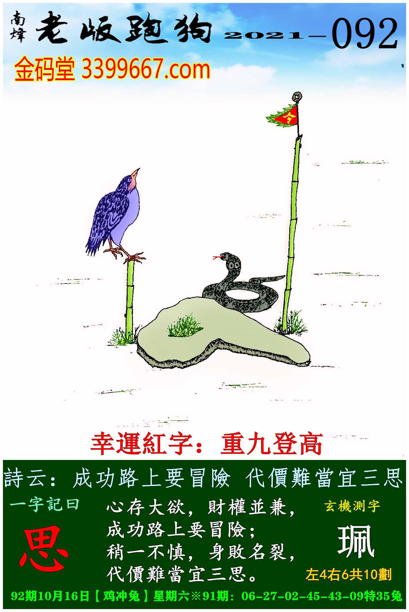 092期老版跑狗一字記之曰:【思】