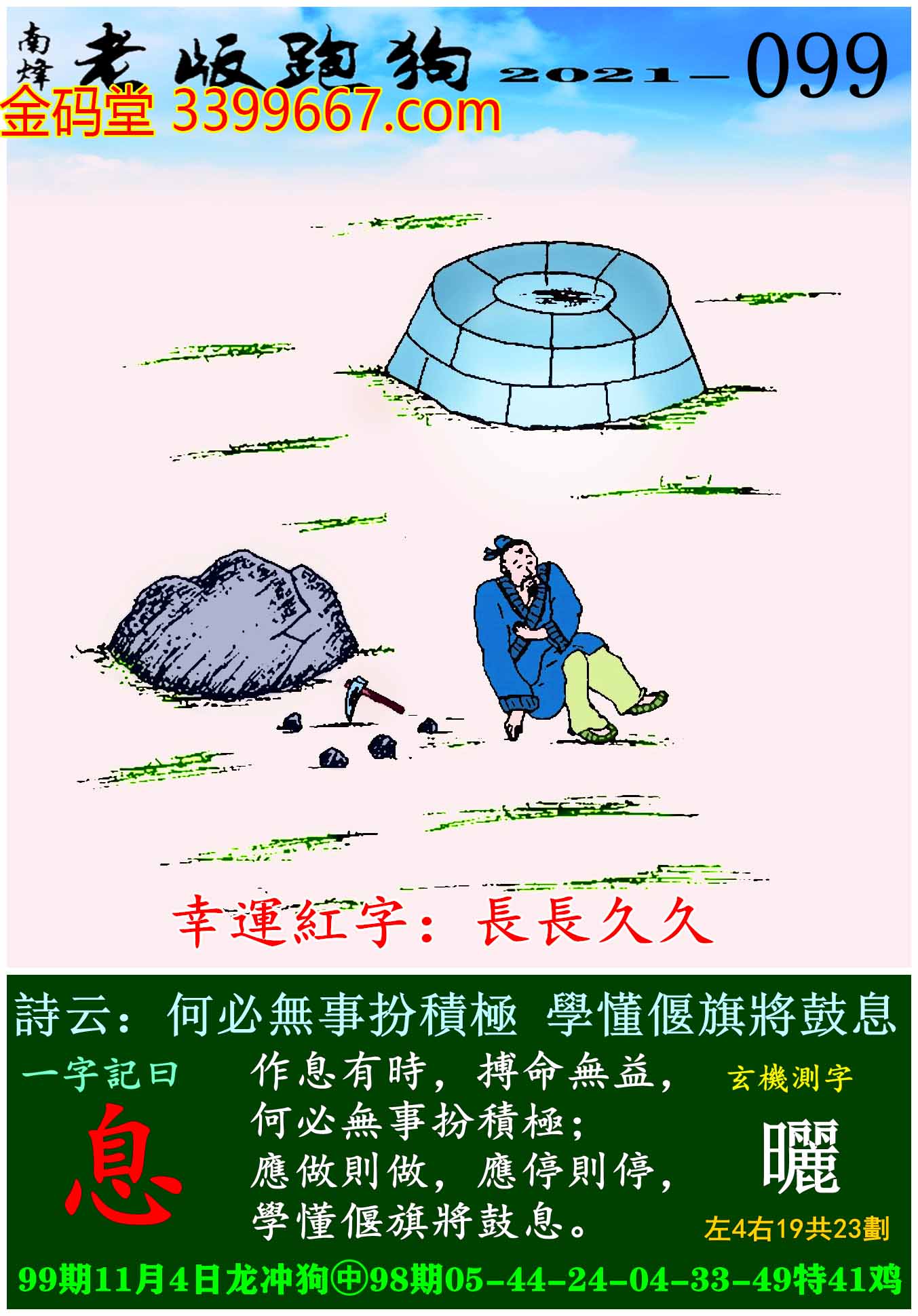 099期老版跑狗一字記之曰:【息】
