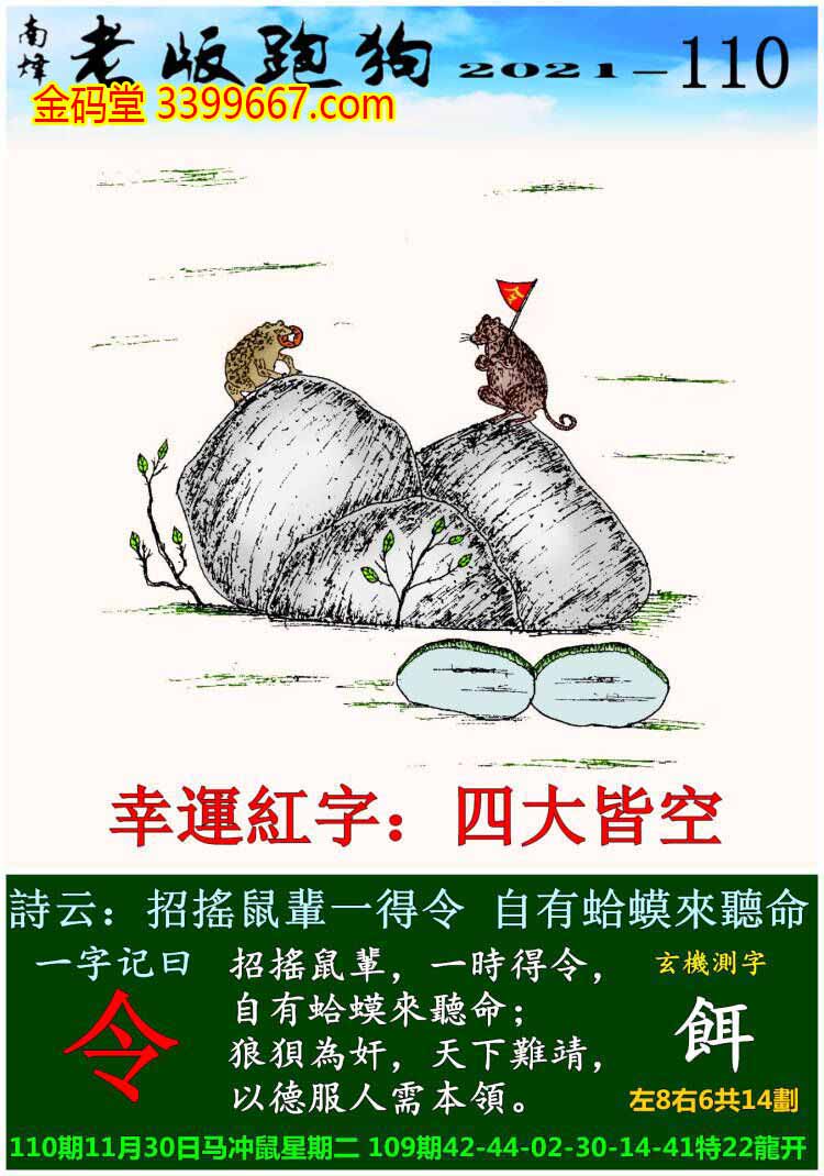 主题 : 110期老版跑狗一字記之曰:【令】玄機測字:《餌》