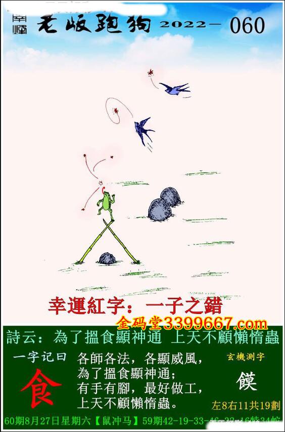 060期老版跑狗一字記之曰:【食】