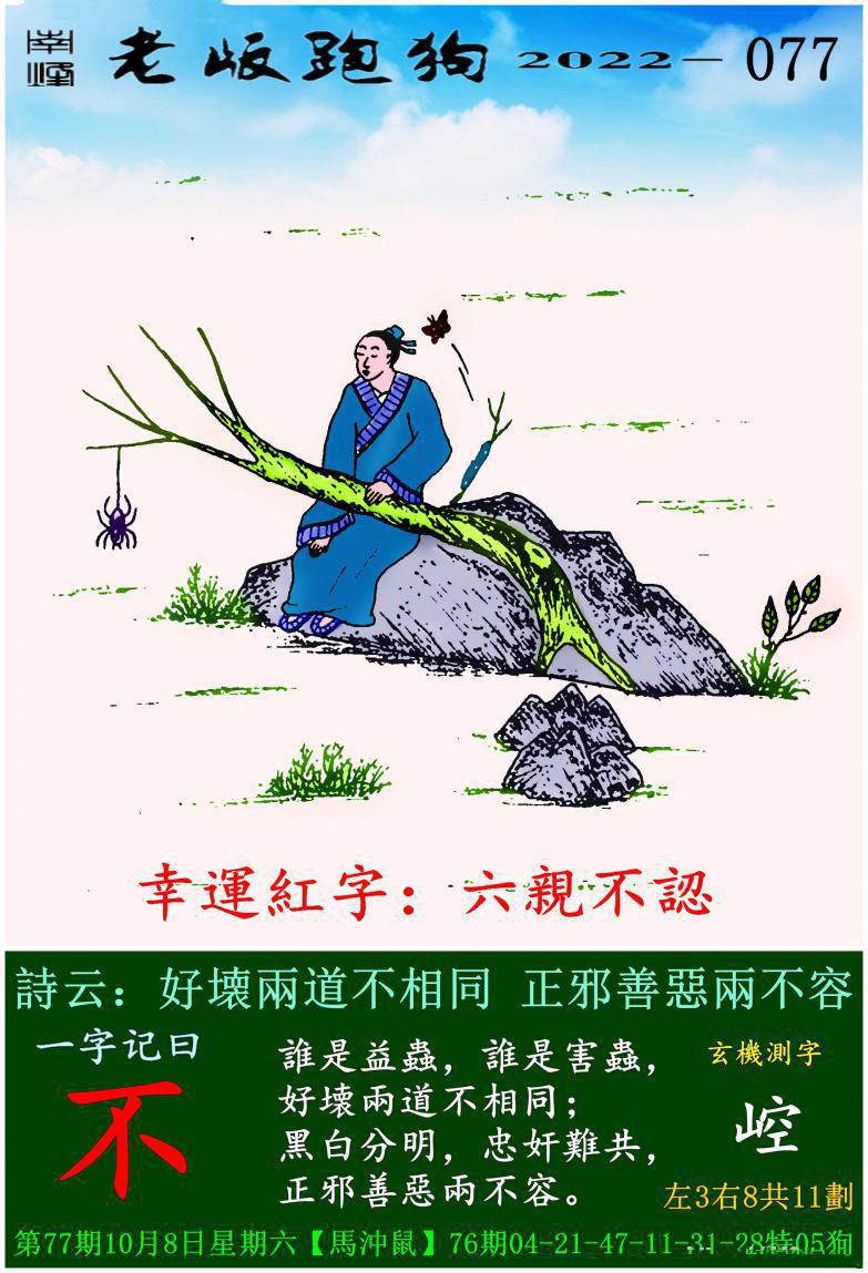 077期老版跑狗一字記之曰:【不】 玄機測字:《崆》