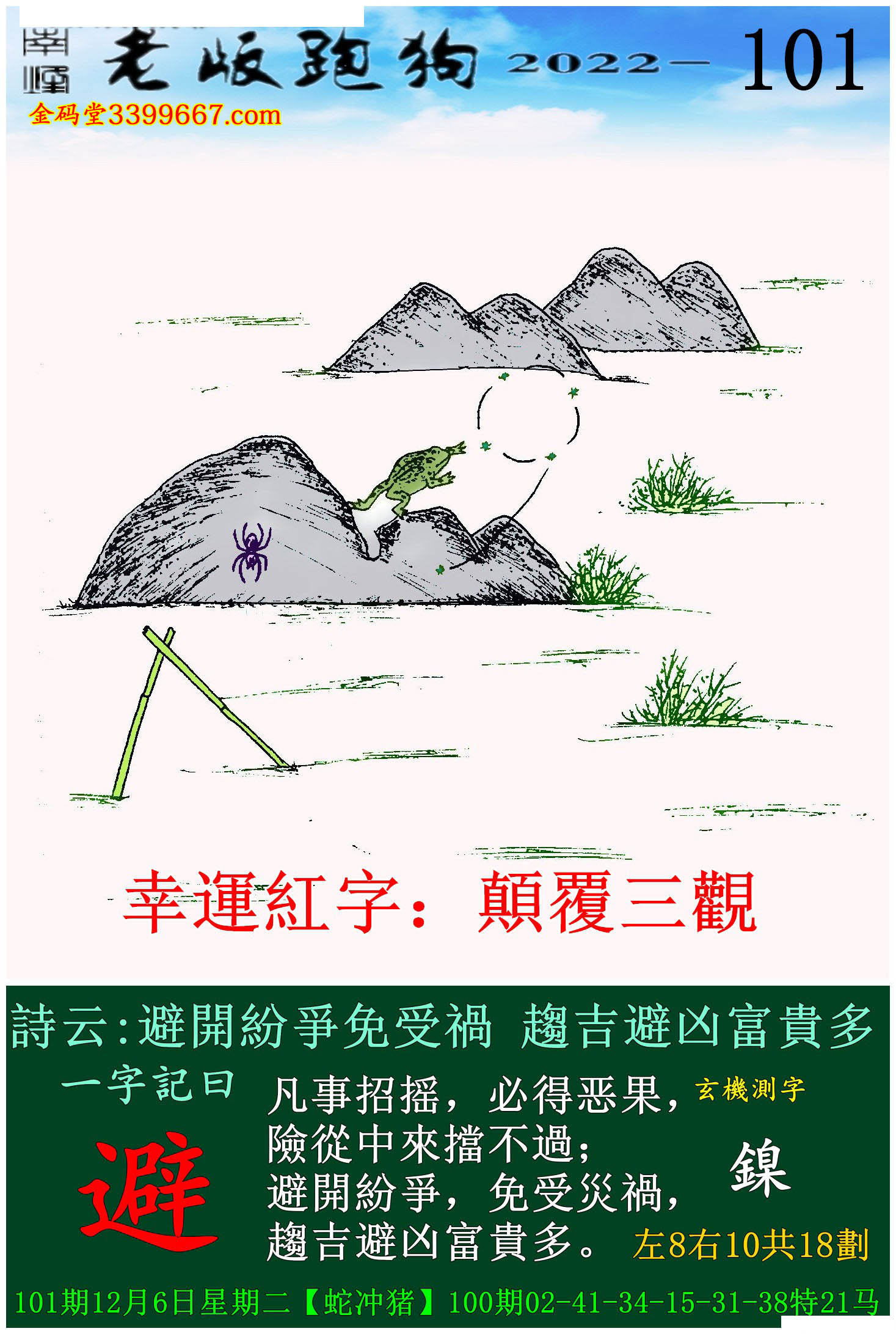 101期老版跑狗一字記之曰:【避】