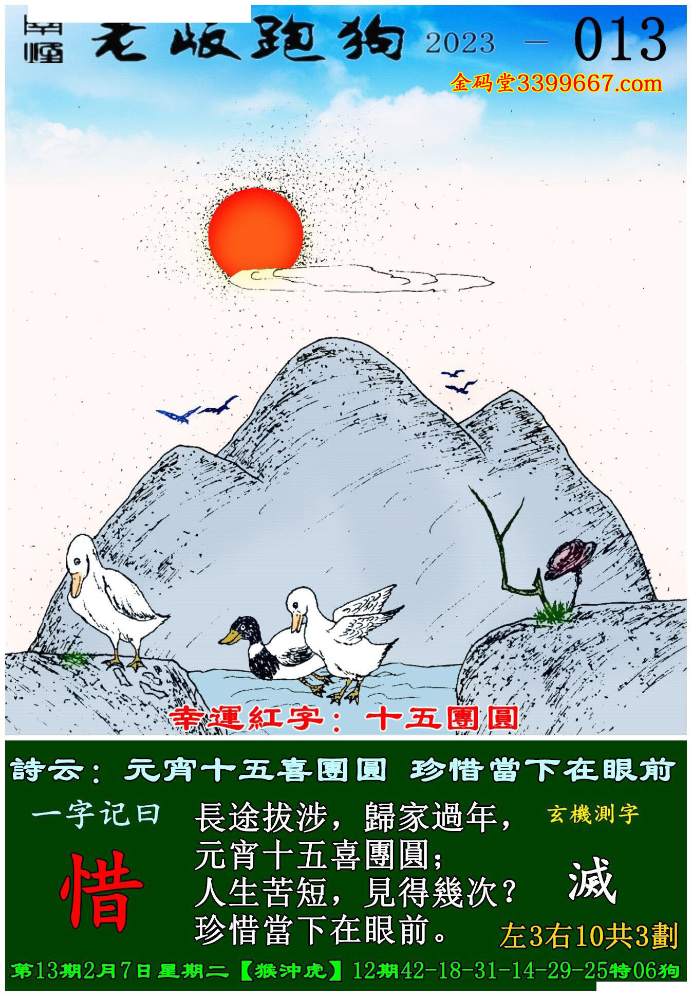 013期老版跑狗一字記之曰:【惜】