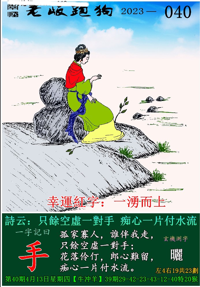 040期老版跑狗一字記之曰:【手】