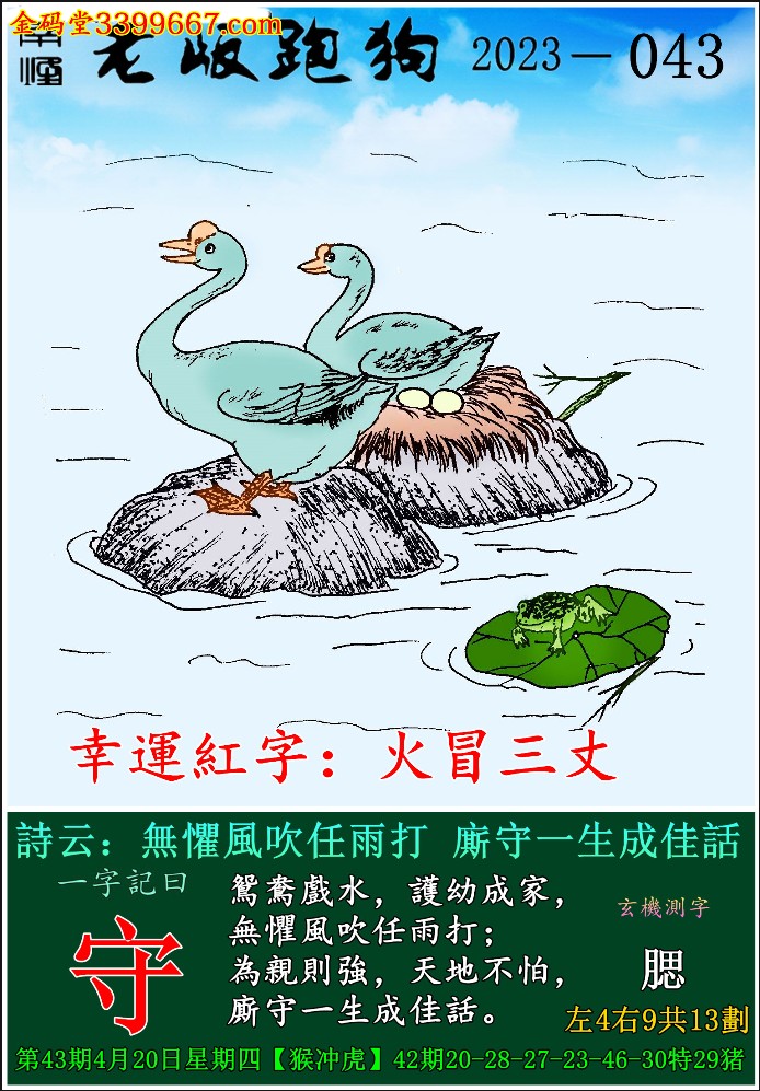 043期老版跑狗一字記之曰:【守】