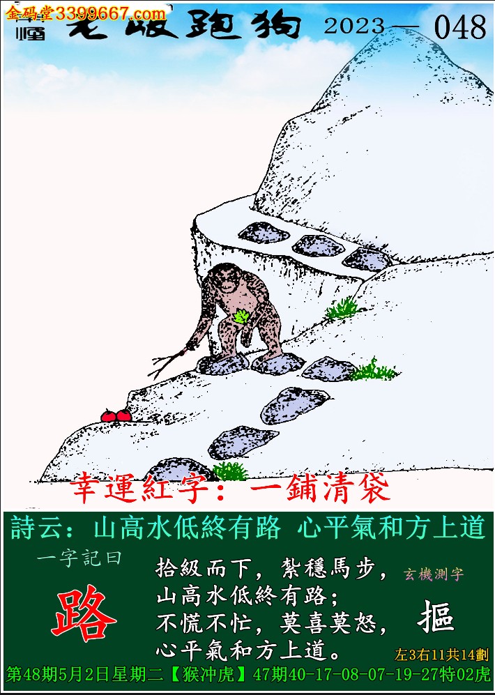 主题 : 048期老版跑狗一字記之曰:【路】 玄機測字:《摳》