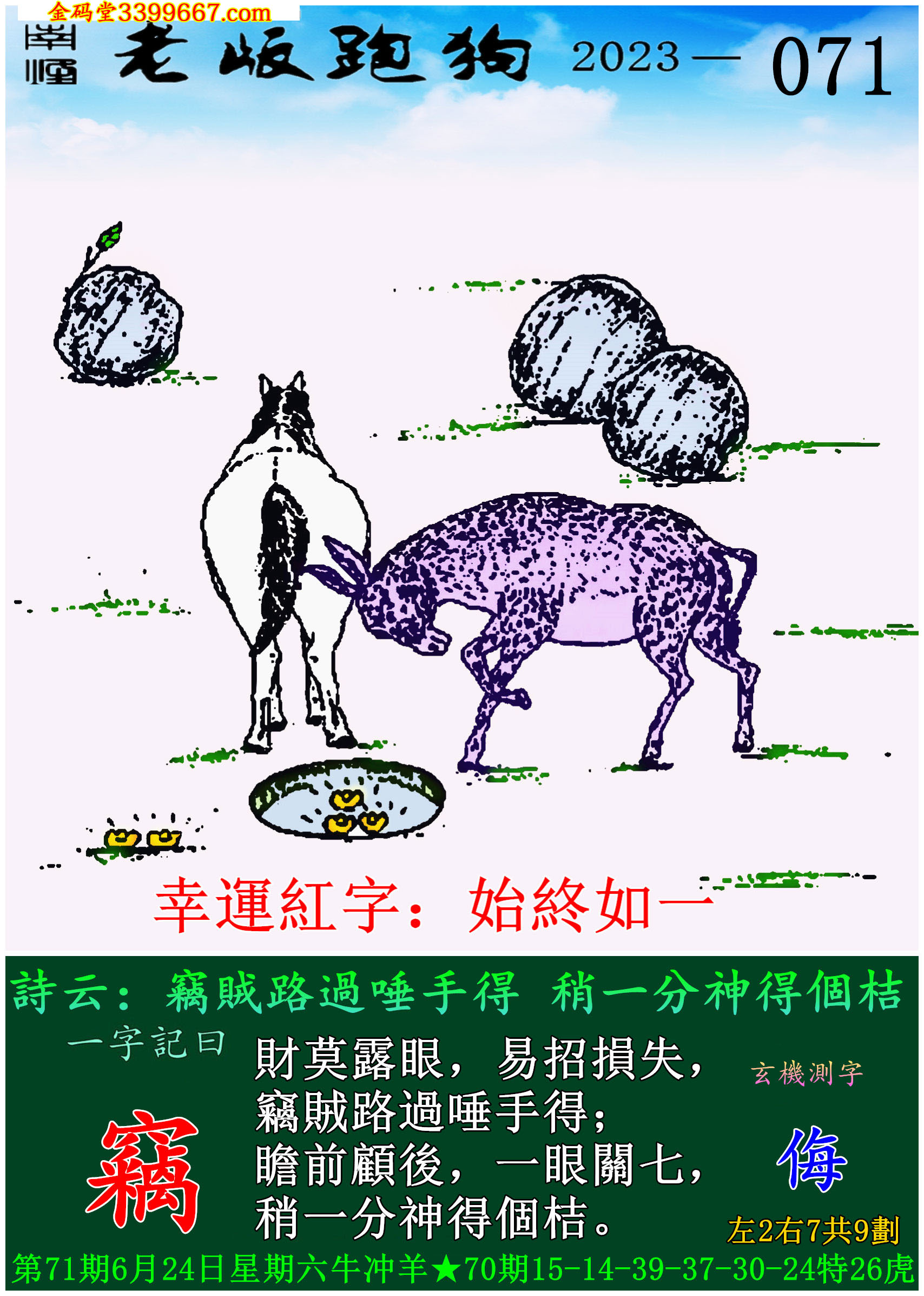 主题 : 071期老版跑狗一字記之曰:【竊】玄機測字:《侮》