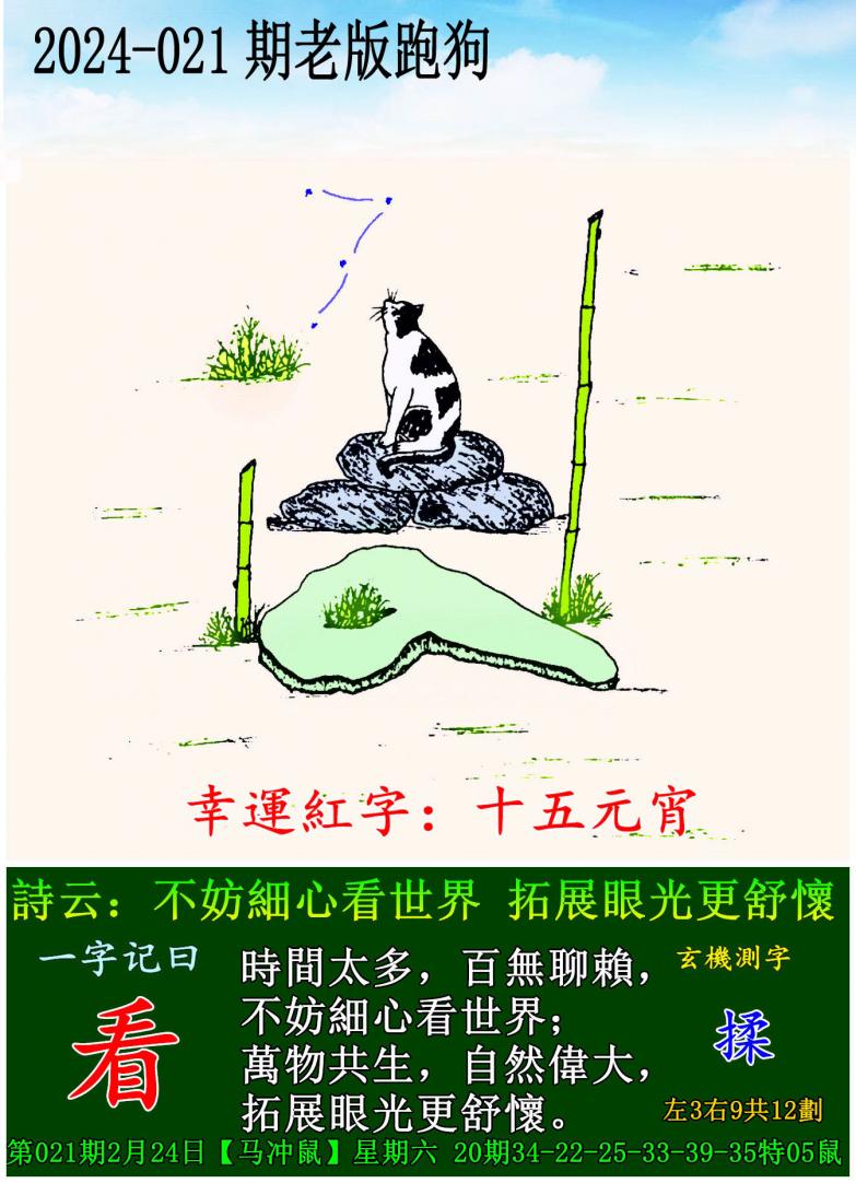 021期老版跑狗一字記之曰:【看】