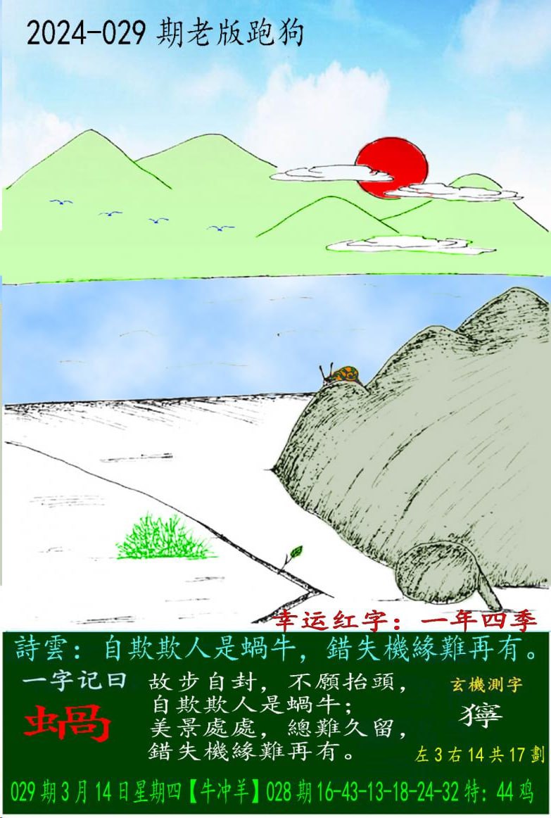 029期老版跑狗一字記之曰:【蝸】