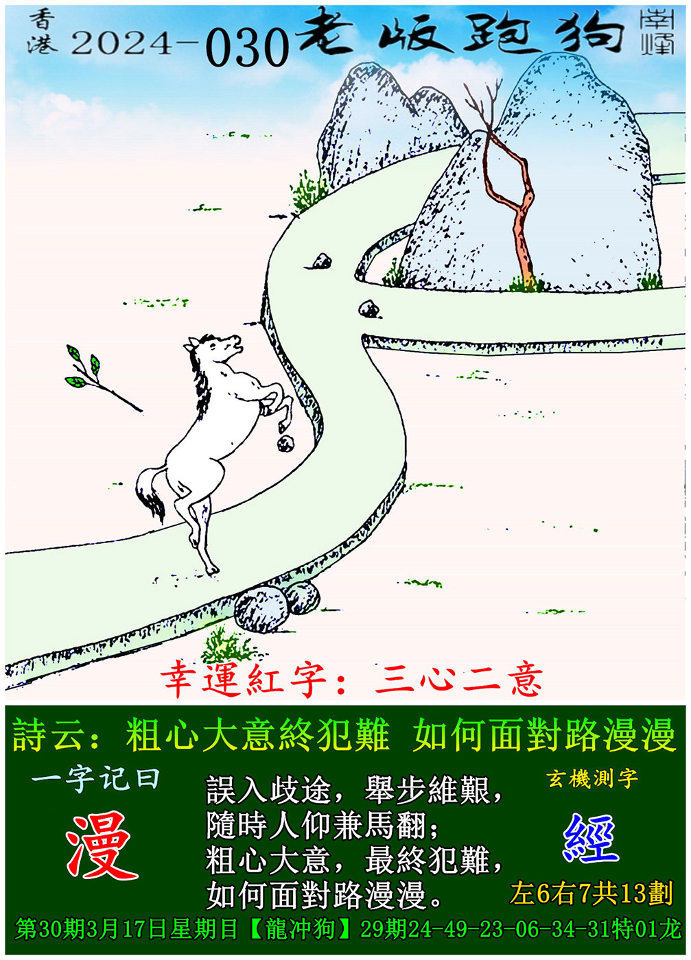 主题 : 030期老版跑狗一字記之曰:【漫】 玄機測字:《經》
