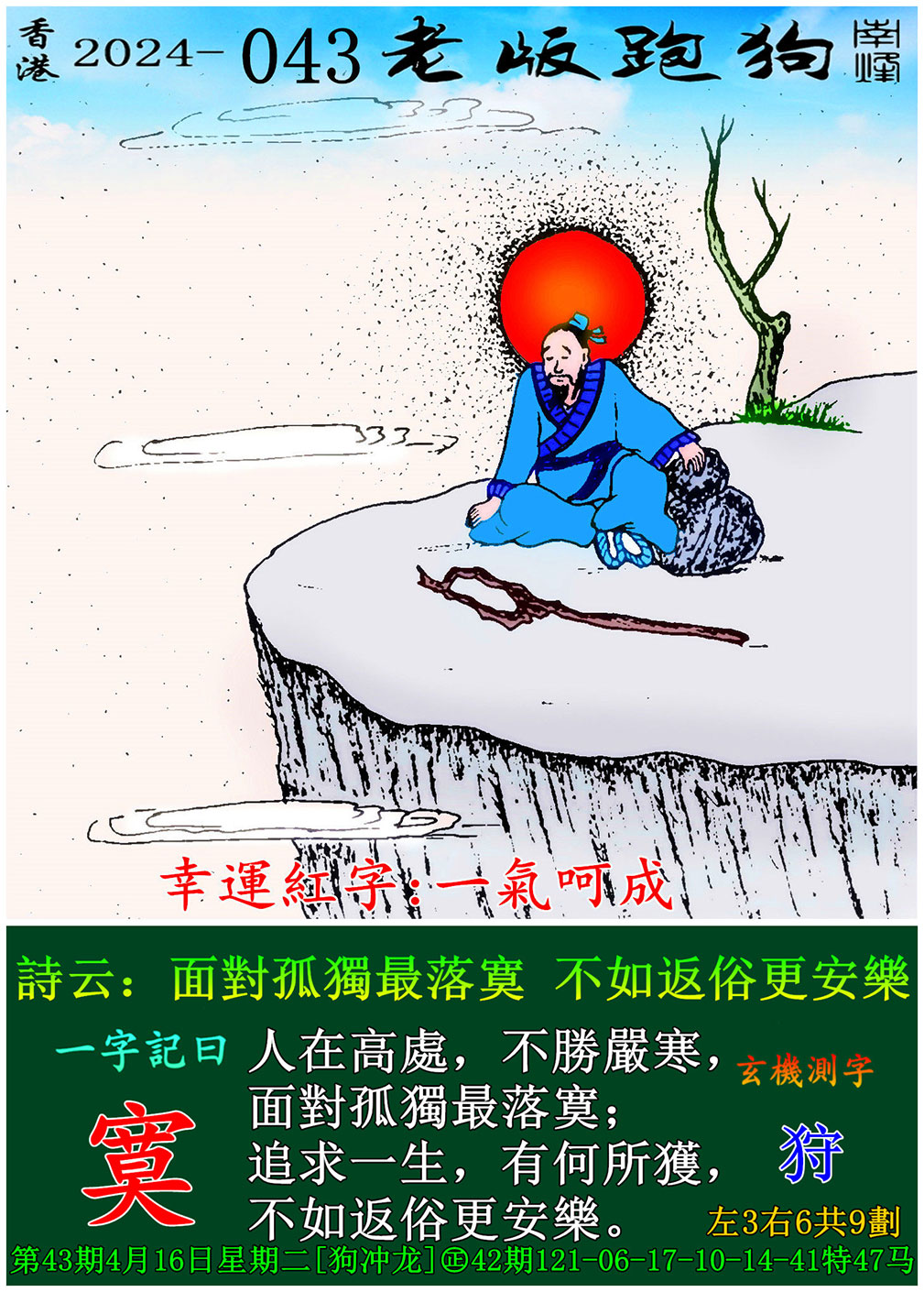 主题 : 043期老版跑狗一字記之曰:【寞】 玄機測字:《狩》