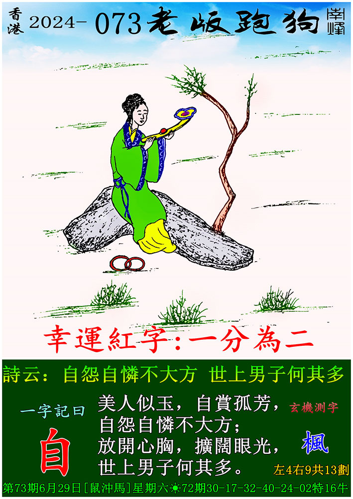 073期老版跑狗一字記之曰:【自】