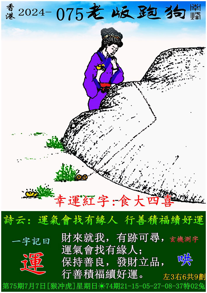 075期老版跑狗一字記之曰:【運】 玄機測字:《哄》