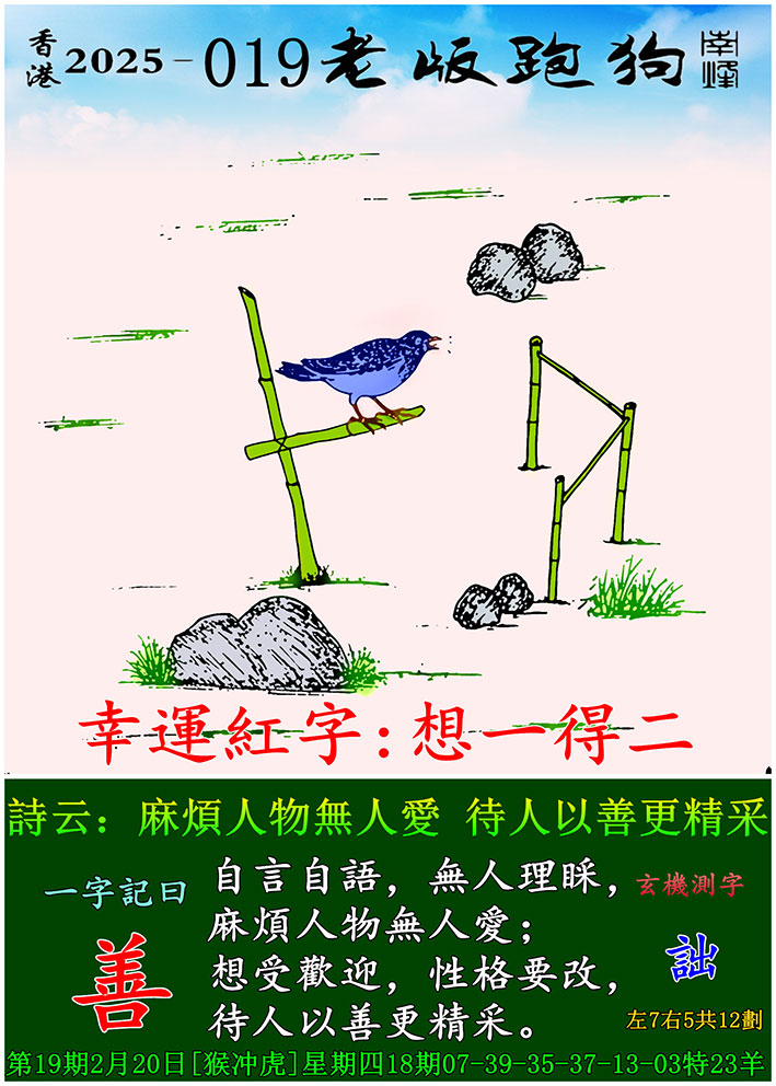 019期老版跑狗一字記之曰:【善】