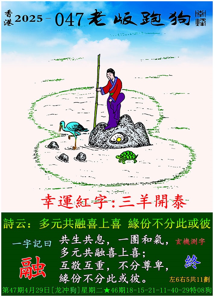 主题 : 047期老版跑狗一字記之曰:【融】 玄機測字:《終》