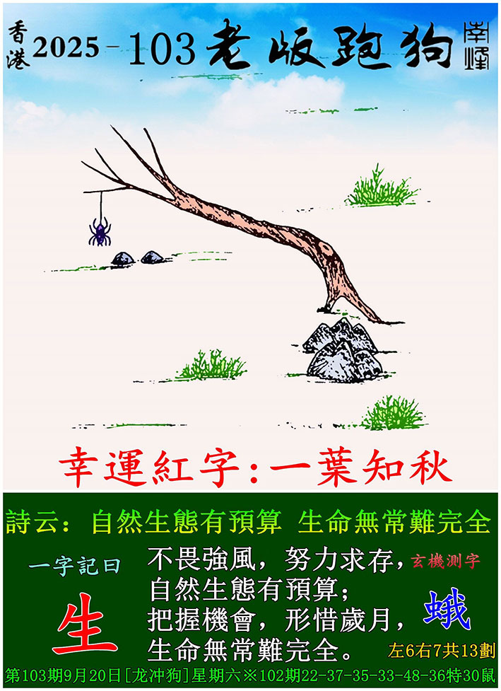 主题 : 103期老版跑狗一字記之曰:【生】 玄機測字:《蛾》