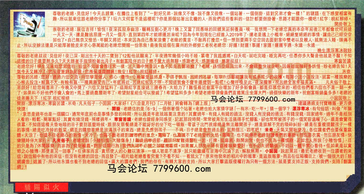 →〖小囡囡〗說起黑莊,最近老總收到一位讀者的來信,说信箱中有他的來信,但沒有老總的回信,而且發了一相片給老總看看究竟?不看不知,一看就火了!原來他發來的相片中的報章,是盗版報章,而且在信箱欄目上,被一個很大的「賭網廣告」遮蓋了,所以他永遠也看不到老總的回信。廣大的讀者們,我們的存在,有賴大家的支持,所以大家打擊盗版侵權行為只有一個方法,就是要支持正版、支持我們、支持「創富網」!