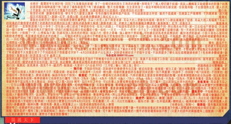 【6】尊敬的老總,您好!又寫信來打擾您了,也不知道會不會有幸被金手抽中?昨晚看中的那匹黑馬竟然不敢下注,果真不是你錢不入你袋,白白错過老總你给的好料,新年將至,知道老你心系彩民,還望老總多派些利是:夜已深。就此閣筆,最後提前豫祝老總你新年快樂!合家安康!红字:成事在天 ---猴頭菇敬上