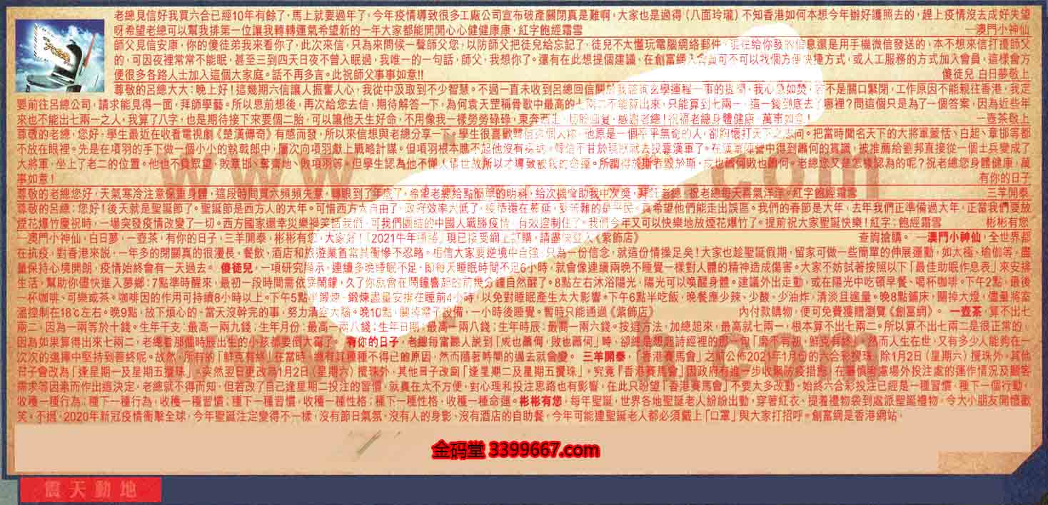 【1】.老總見信好我買六合已經10年有餘了,馬上就要過年了,今年疫情導致很多工廠公司宣布破產關閉真是難啊,大家也是過得(八面玲瓏)不知香港如何本想今年辦好護照去的,趕上疫情沒去成好失望呀希望老總可以幫我排第一位讓我轉轉運氣希望新的一年大家都能開開心心健健康康,紅字飽經霜雪  一澳門小神仙