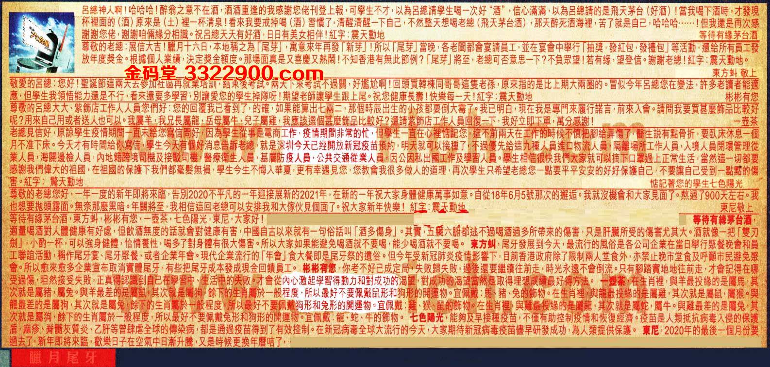 【6】.尊敬的老總您好,一年一度的新年即將來臨,告別2020不平凡的一年迎接展新的2021年,在新的一年祝大家身體健康萬事如意。自從18年6月5號那次的邂逅。我就沒機會和大家見面了。熬過了900天左右。我也想要拋頭露面。無奈那麼黑暗。年關將至,我相信這回老總可以安排我和大傢伙見個面了。祝大家新年快樂!紅字:震天動地  东尼敬上
