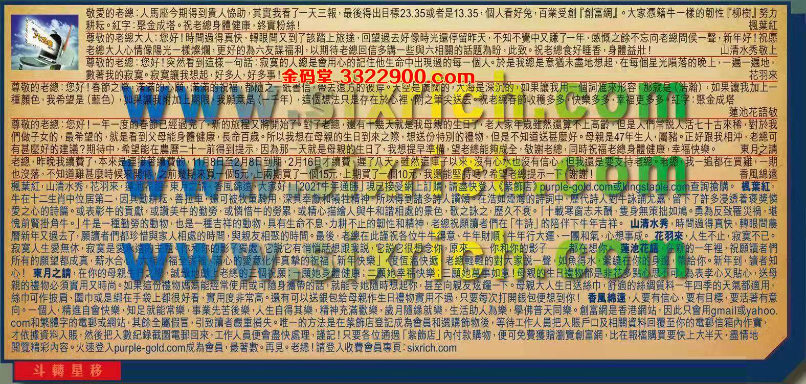 【1】.敬愛的老總:人馬座今期得到貴人協助,其實我看了一天三報,最後得出目標23.35或者是13.35 個人看好兔,百業受創「創富網」。大家憑籍牛一樣的韌性「柳樹」努力耕耘。紅字:聚金成塔。祝老總身體健康,終實粉絲!  楓葉紅