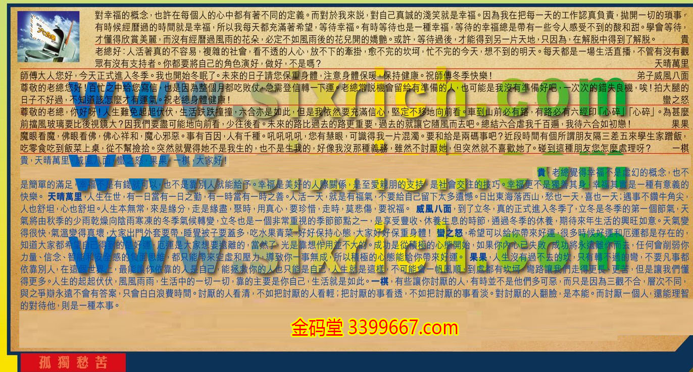 102期:六合皇红字【孤獨愁苦】暗码《05 19 33 46》
