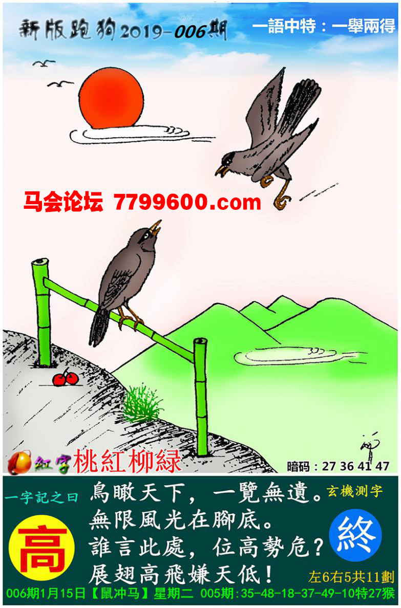 主题 : 006期:新版跑狗一字記之曰【高】玄機測字:《終》
